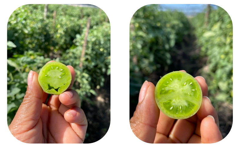 Además, el boro es un micronutriente importante que desempeña un papel crítico en el crecimiento, el desarrollo y el estado general de las plantas. Es esencial para una floración y un desarrollo de semillas adecuado, influye en el inicio de la floración, la polinización y la formación de semillas sanas. Unos niveles insuficientes de boro pueden provocar el aborto de las flores, una menor producción de semillas y una mala calidad de éstas. En el cultivo de Tomate provoca que adquiera una textura rugosa y acorchada, con zonas excesivamente acuosas y hundidas, provocando una maduración temprana.