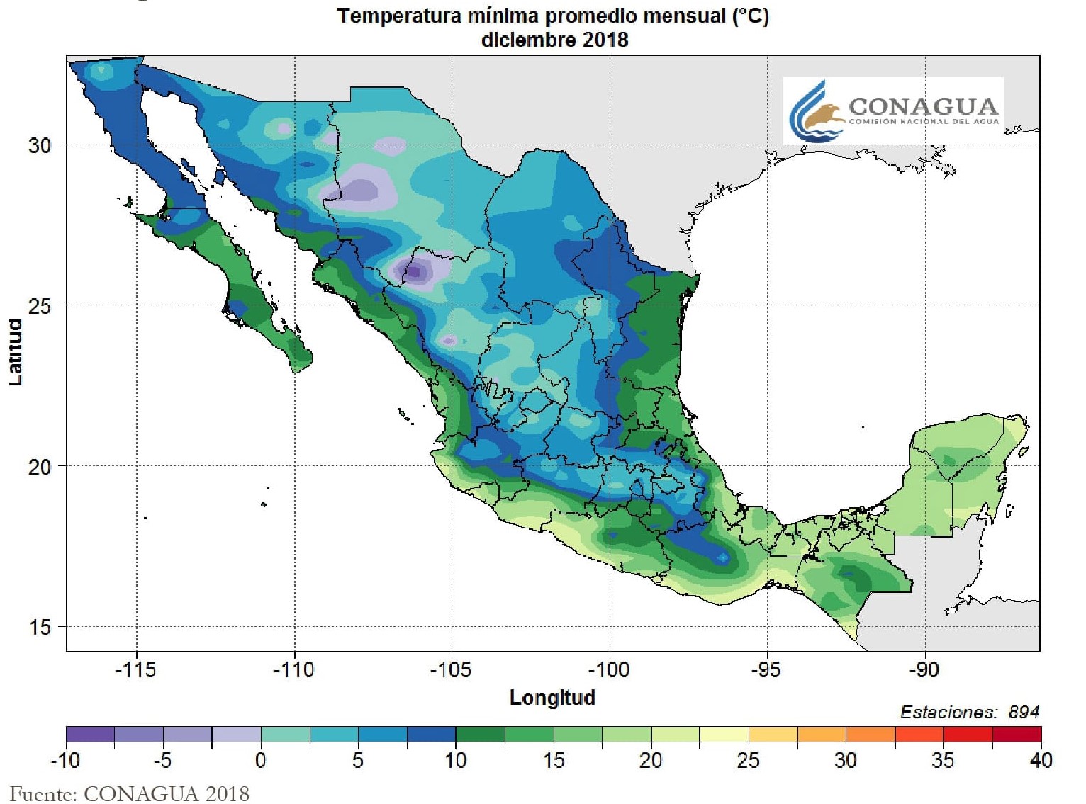 Si observamos el siguiente mapa, podemos encontrar que el año pasado (diciembre) se registraron temperaturas menores a 10°C en la zona norte del país, donde se concentra gran parte de la producción de este cultivo, (tomando en cuenta que en este mes se registraron las últimas siembras de la temporada de otoño-invierno). Para enero la temperatura se mantuvo en ese promedio afectando a las plantaciones en etapas de V4 y V6, siendo en estas etapas, donde se concentra la mayor superficie sembrada al momento del descenso de temperatura de esta importante zona del país.