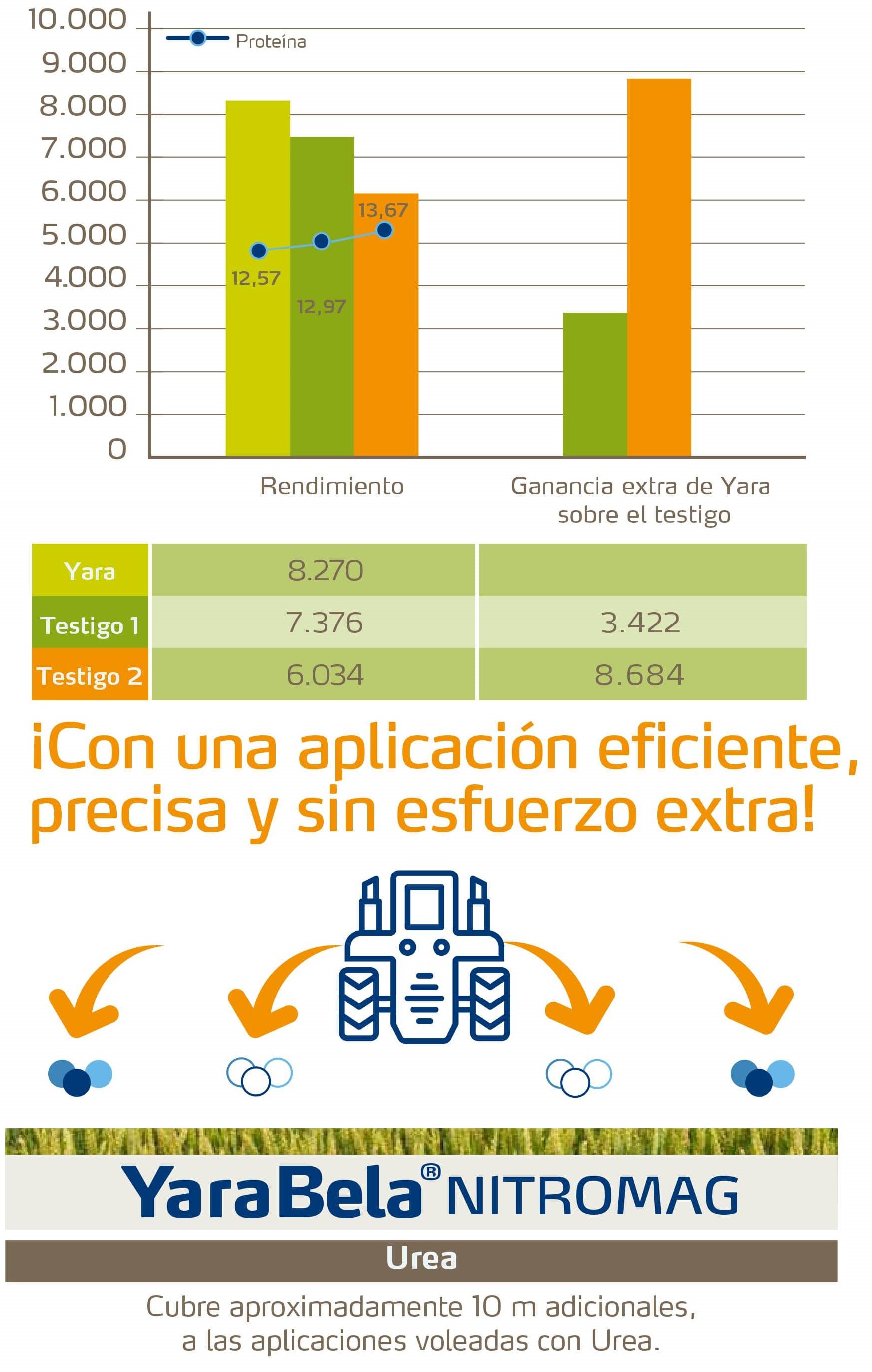 El programa de nutrición de Yara aporta una nutrición balanceada en tiempo y forma a la demanda exacta del cultivo. Más kilos de trigo por cada unidad de Nitrógeno aplicado. Ganancia extra de calidad al aplicar la cantidad idónea por tu cultivo.