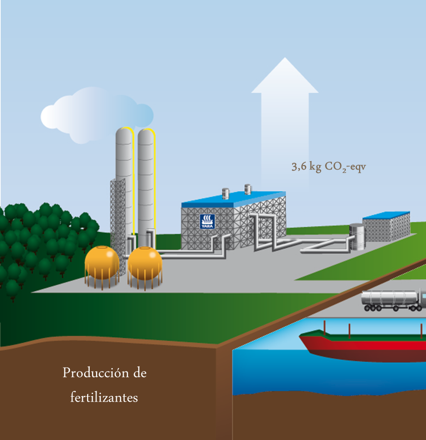 Cuando se operan las fábricas de amoniaco y de ácido nítrico con la tecnología más avanzada (BAT – Best Available Technology), la huella de carbono total de nitrato de amonio es de 3.6 kg CO2 por kg N. La producción de amoniaco fijando el nitrógeno del aire requiere mucha energía, y el gas natural es la fuente de energía más eficiente. Las plantas de Yara son entre los más eficientes a nivel energético del mundo.