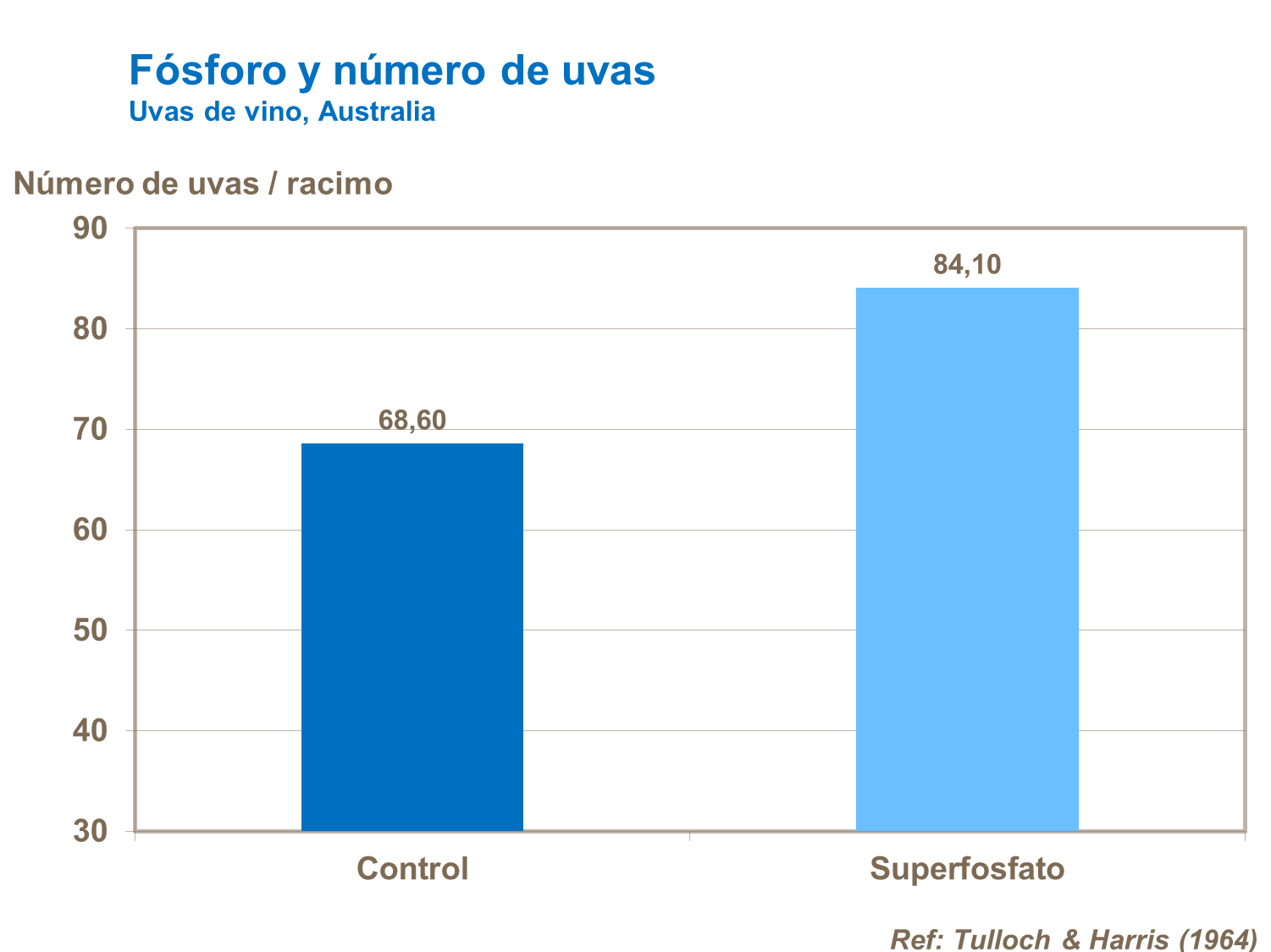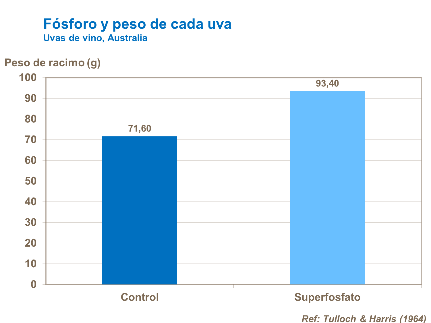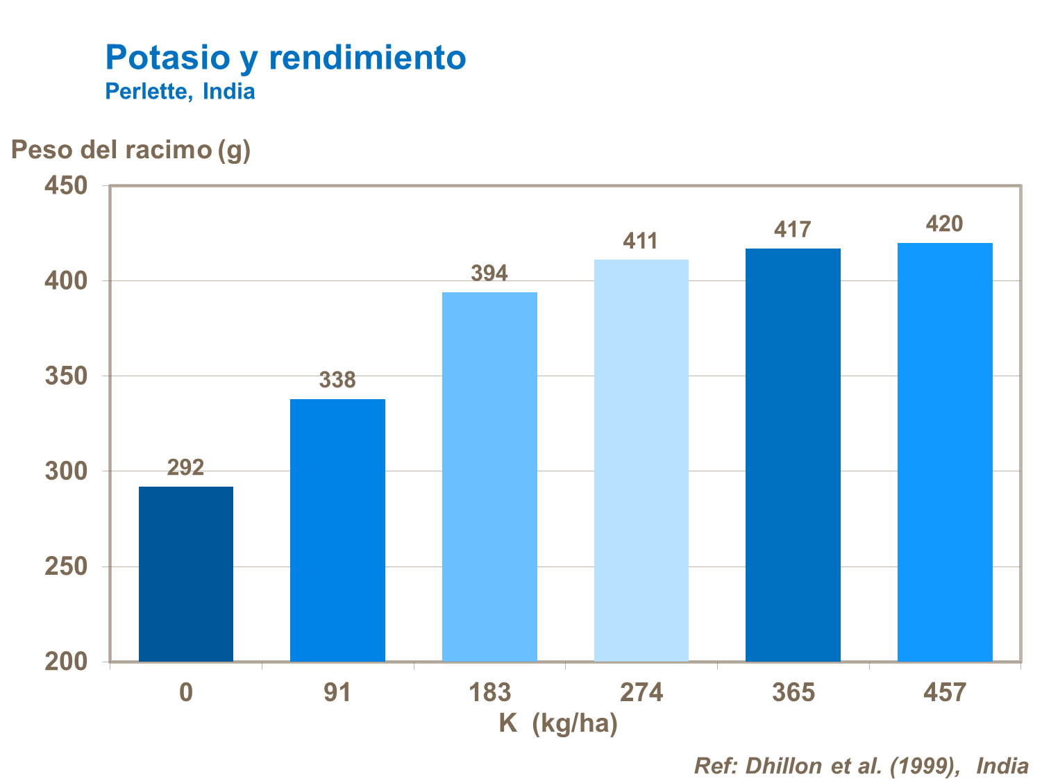 El potasio está involucrado en el transporte de productos de la fotosíntesis desde las hojas hacia diferentes órganos de la planta, teniendo así efecto en el crecimiento de cada uva y la producción general. Se han confirmado mejoras en el rendimiento y peso del racimo de entre el 24 y el 44%.