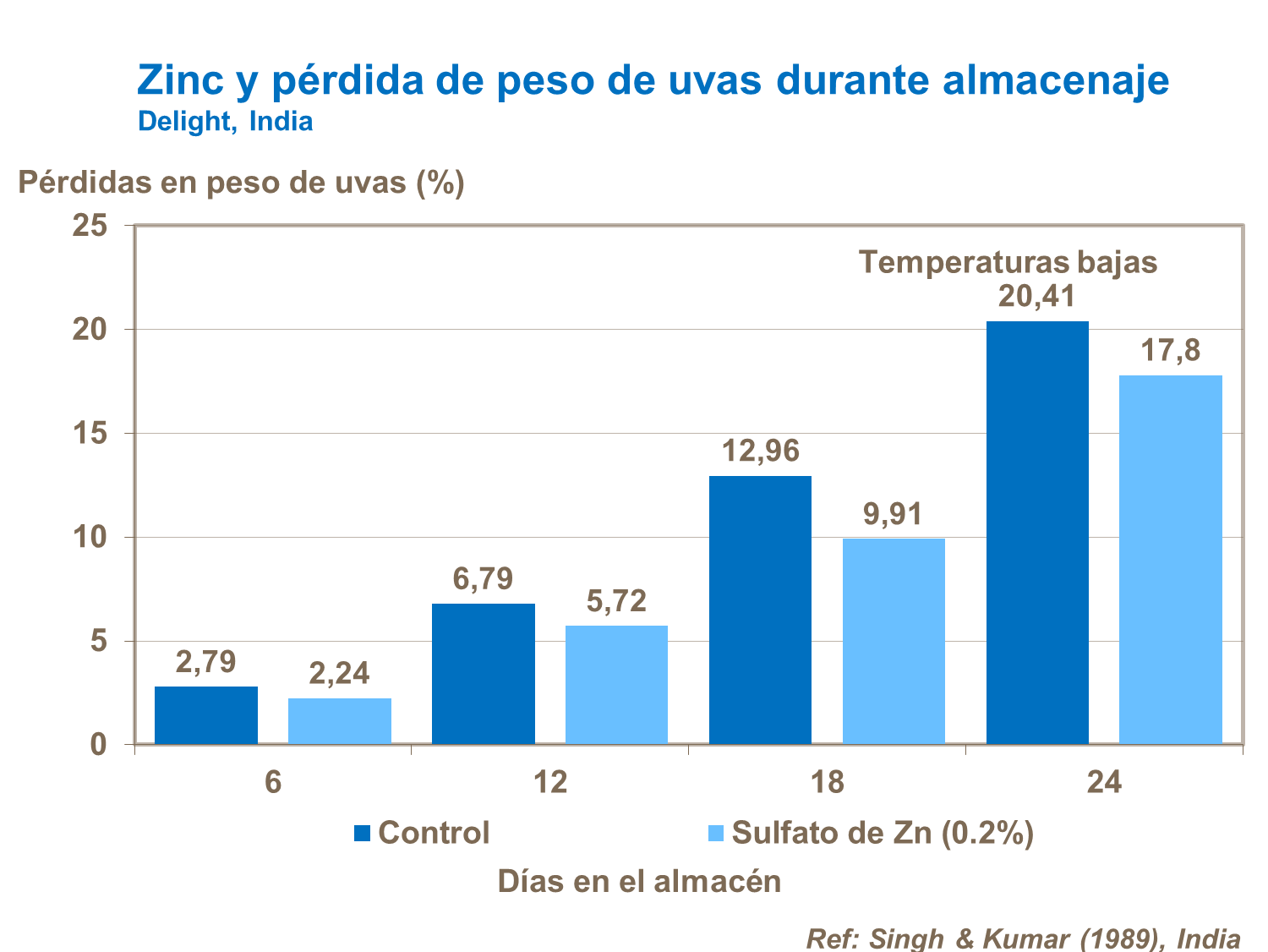 Zinc tiene un efecto positivo en el peso de la uva en el almacén.